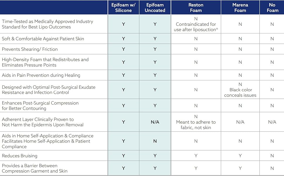 Epifoam provides an unsurpassed pressure interface between the patient and compression garments. It mitigates the risks of excessive pressure while preventing bruising, swelling, and eliminating friction. This advanced technology promotes smooth and sculpted results.
